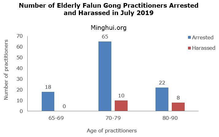 Specifično je da su 123 praktikanta koja su se našla na meti progona u posljednjih mjesec dana imala ili bila starija od 65 godina, dok je najstariji imao 90 godina, a 5 ih je starosti između 85 i 88 godina. Među tim starijim osobama, njih 105 je bilo uhapšeno, a njih 18 maltretirano.