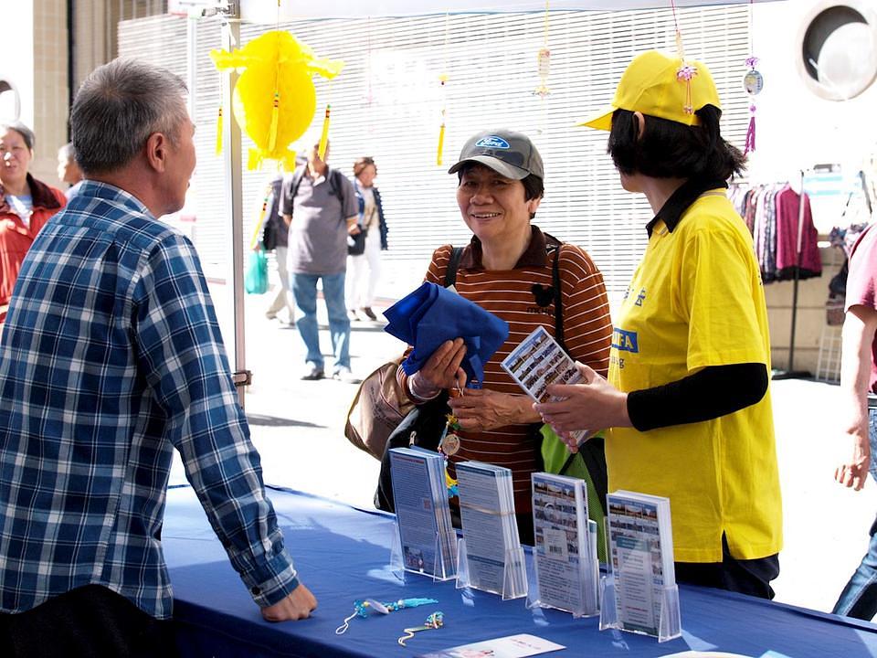 Zahvaljujući upornim naporima praktikanata tokom posljednjih nekoliko godina, mnogi su stanovnici kineske četvrti i turisti, gosti iz Kine, prestali vjerovati propagandi KPK usmjerenoj protiv Falun Gonga. Jedna stanovnica, porijeklom iz provincije Guangdong, je praktikantu rekla: „Ovdje, na vašem štandu, sam već prije nekoliko mjeseci napustila organizacije KPK. Ako imate bilo kakvih Falun Gong materijala, molim vas dajte mi ih. Uvijek ih rado čitam.” Praktikantima je rekla da u svom domu drži ručno napravljen cvijet lotosa koji joj je dao praktikant Falun Gonga.