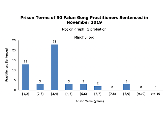 Prema informacijama koje je prikupio Minghui.org, u novembru 2019. godine je 50 praktikanta Falun Gonga osuđeno na zatvorske kazne od strane Komunističke partije Kine (KPK).