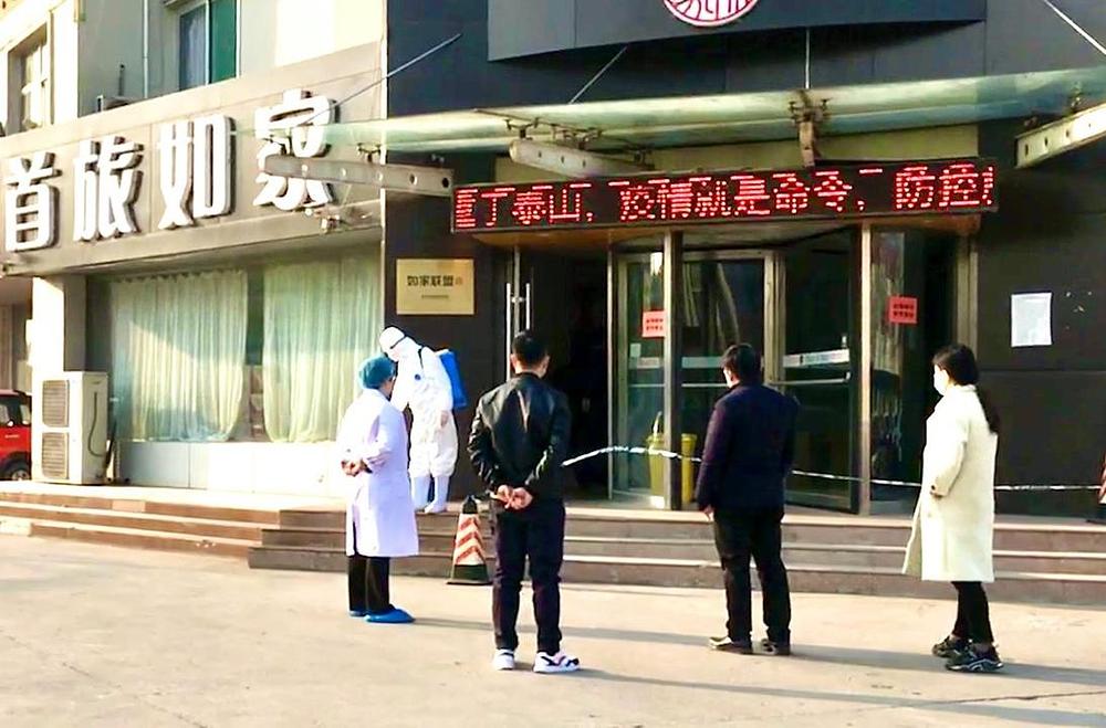 Na donjim fotografijama ispred hotela „Paibaiyun“ vidi se policijski automobil koji je dežurao 24 sata, a povremeno su viđeni ljudi kako dezinficiraju ulaz u hotel.
