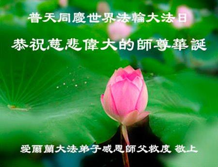 Praktikanti iz UK, Francuske, Irske, Holandije, Nemačke, Belgije, Austrije i Švajcarske obeležavaju Svetski Dan Falun Dafe i 28. godišnjicu javnog predstavljanja Falun Dafe. Oni s poštovanjem žele cenjenom Učitelju srećan rođendan! Čestitke dolaze iz sledećih mesta: