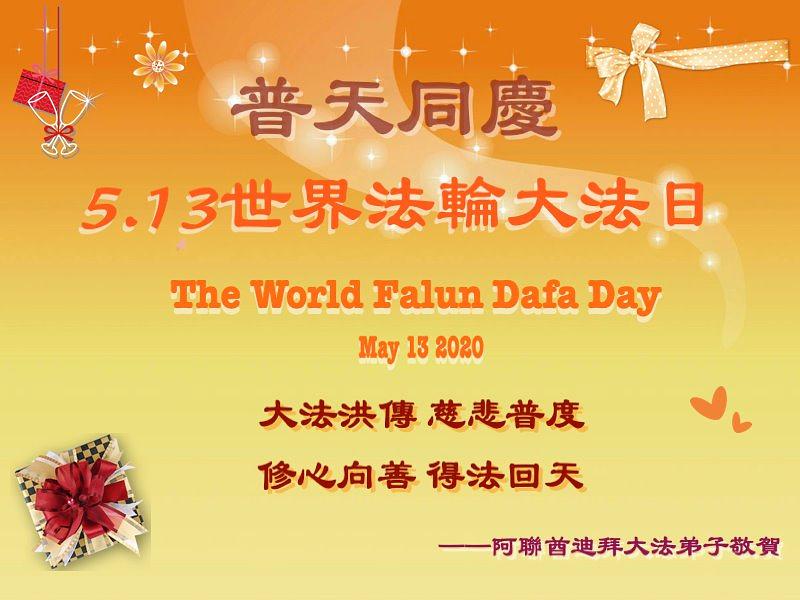 Svjetski se Falun Dafa dan slavi 13. maja svake godine. Na današnji je dan 1992. godine gospodin Li Hongzhi, osnivač Falun Dafa, predstavio ovu praksu javnosti. Oko 100 miliona praktikanata u preko 100 zemalja u Falun Dafa je pronašlo nadu za svoj život i živote svojih porodica.