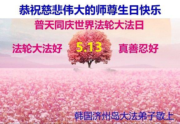 Praktikanti sa ostrva Jeju u Južnoj Koreji žele Učitelju Liju sretan rođendan.