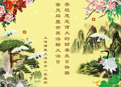 Praktikanti iz sljedećih distrikta i okruga u Šangaju slave Svjetski Falun Dafa dan i 21. obljetnicu predstavljanja Falun Dafa u javnosti! S poštovanjem žele milostivom velikom Učitelju sretan rođendan!