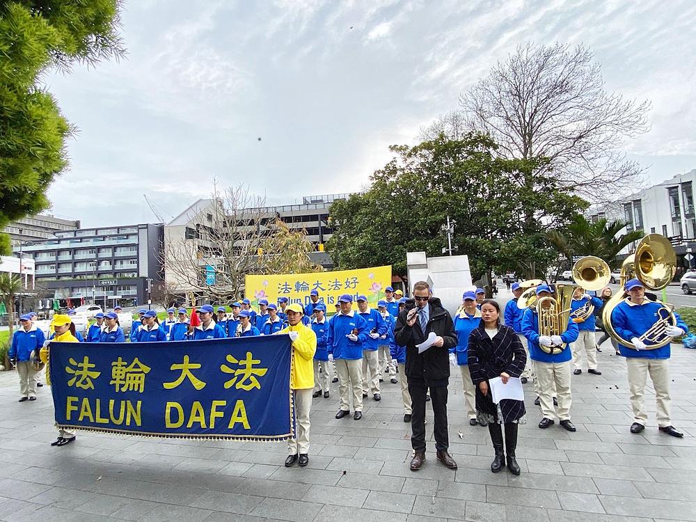 Falun Dafa praktikanti s Novog Zelanda održali su skup u Newmarketu, u predgrađu Aucklanda, 1. avgusta ove godine. Cilj skupa je bio podizanje svijesti o kontinuiranom progonu ove prakse u Kini. Praktikantski orkestar limene glazbe 'Tian Guo Marching Band' je izvodio muzičke komade koji su privlačili pažnju prolaznika.
