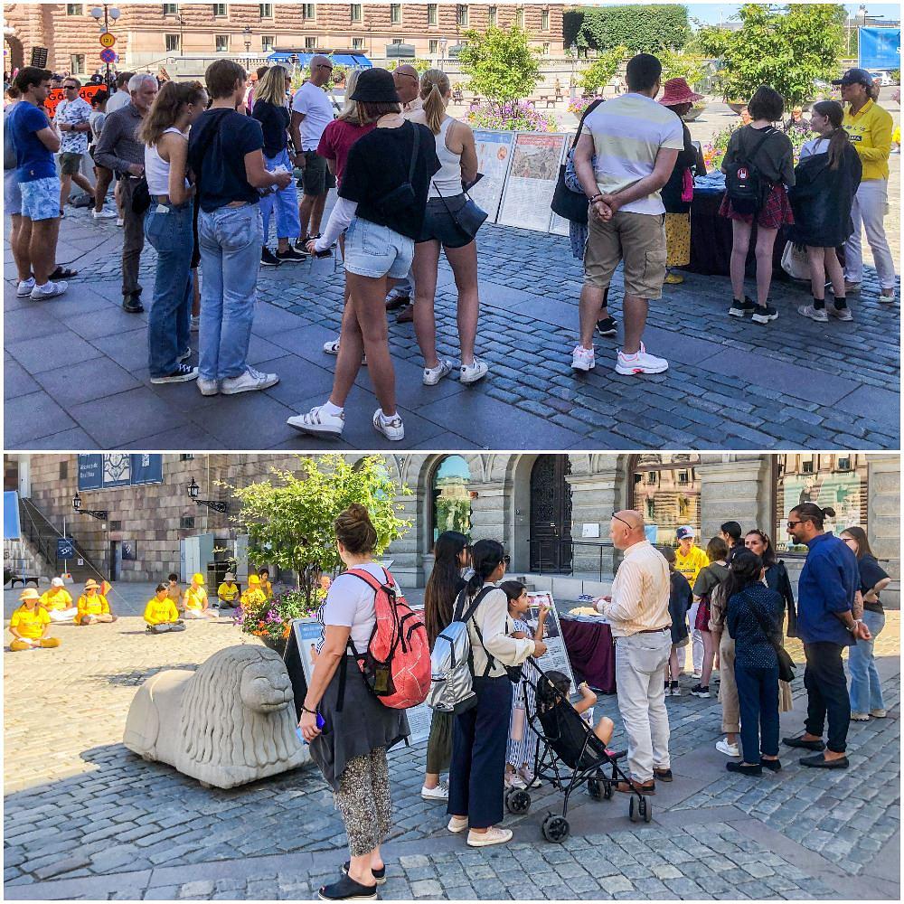 Falun Gong praktikanti iz Švedske su 1. i 4. avgusta 2020. godine organizovali aktivnosti za objašnjavanje istine na Mynttorgetu, najprometnijoj javnoj površini u Stockholmu.