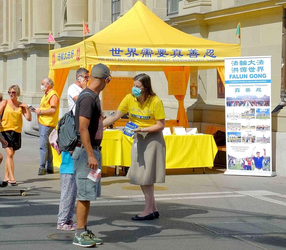 Falun Dafa praktikanti su, 14. i 15. avgusta 2020. godine, u Švicarskoj održali informativne događaje u Bazelu, Cirihu i Bernu. Njihove su demonstracije vježbi privukle veliki broj prolaznika znatiželjnih da saznaju više o Falun Dafa. Mnogi su od njih bili šokirani kad su, čitajući o progonu u Kini, saznali da se zatvorenim praktikantima, bez njihovog pristanka, uzimaju tjelesni organi i prodaju radi zarade. Neki su ljudi potpisali peticiju koja poziva na okončanje progona i ponijeli kući pamflete kako bi o ovome više saznali.