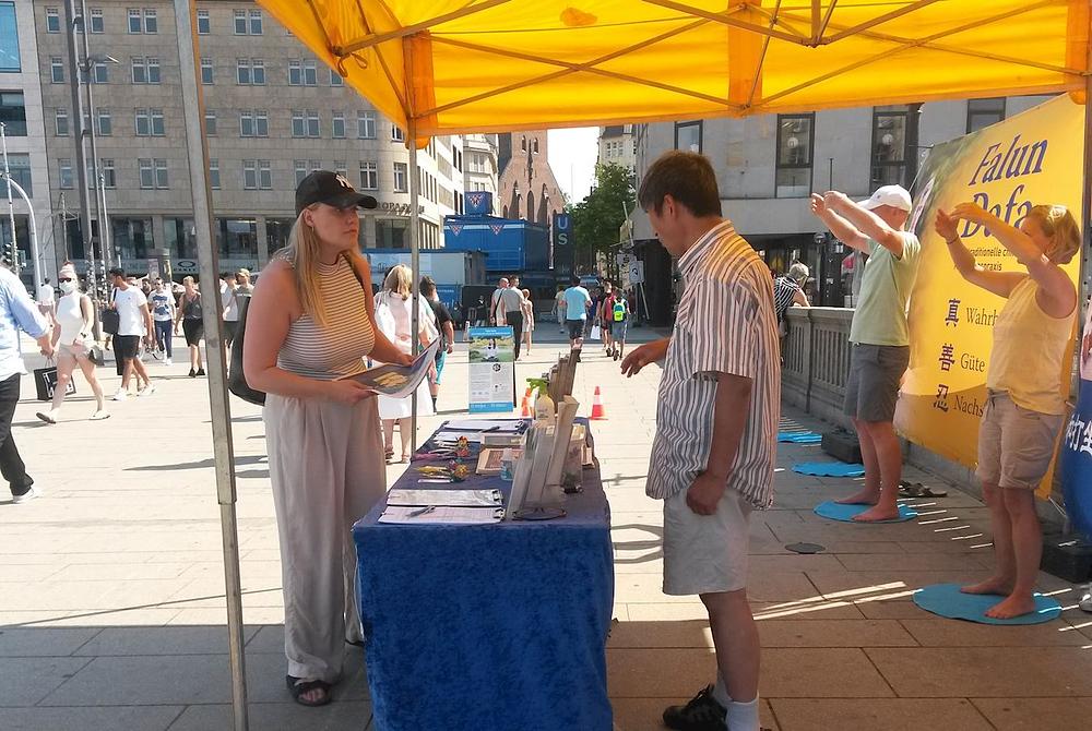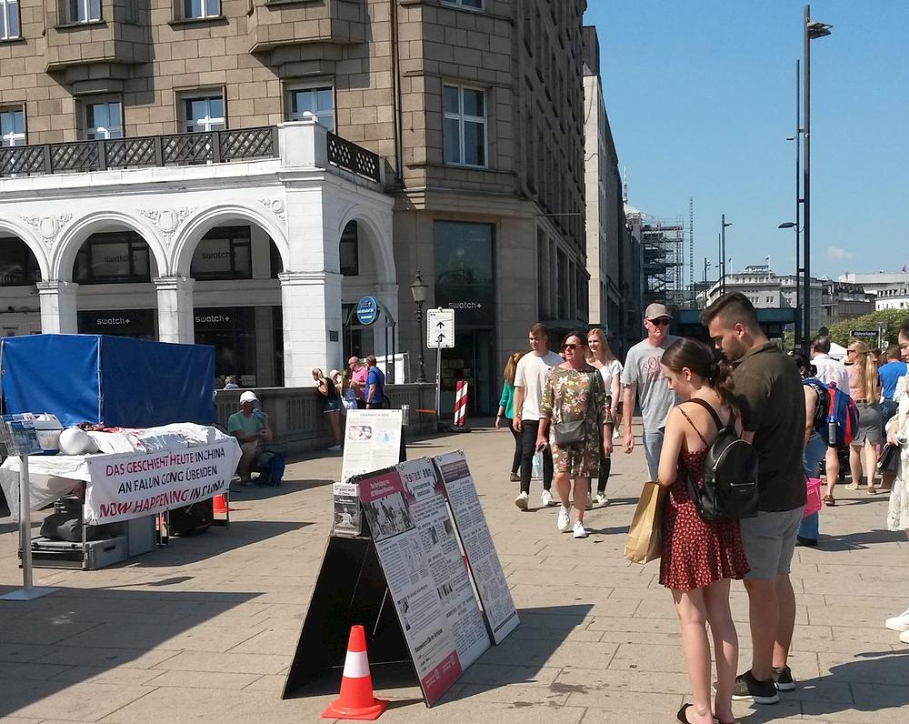 Falun Gong praktikanti su, 15. avgusta 2020. godine, održali svoju manifestaciju na Reesendammbrücke, istorijskom mostu u centru Hamburga u Njemačkoj.