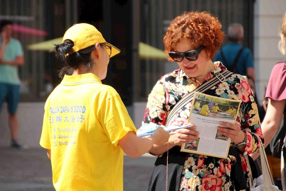 Zlatno žuti šator sa natpisom Falun Dafa ponovo je viđen na trgu Falkenplatz u Lucernu 24. avgusta 2020. Prolaznici su naglas čitali natpis i zaustavljali se ispred izložbenih panela kako bi se informirali o ovoj praksi uma i tijela. Drugi su potpisivali peticiju kojom pozivaju vladu Švajcarske da pomogne u okončanju progona u Kini nakon što su saznali da se ova miroljubiva praksa progoni već 21 godinu. Neki nikada prije nisu čuli za ovu praksu meditacije, no drugi su nju već znali iz aktivnosti praktikanata održavanih na gradskim lokacijama privlačnim za turiste.