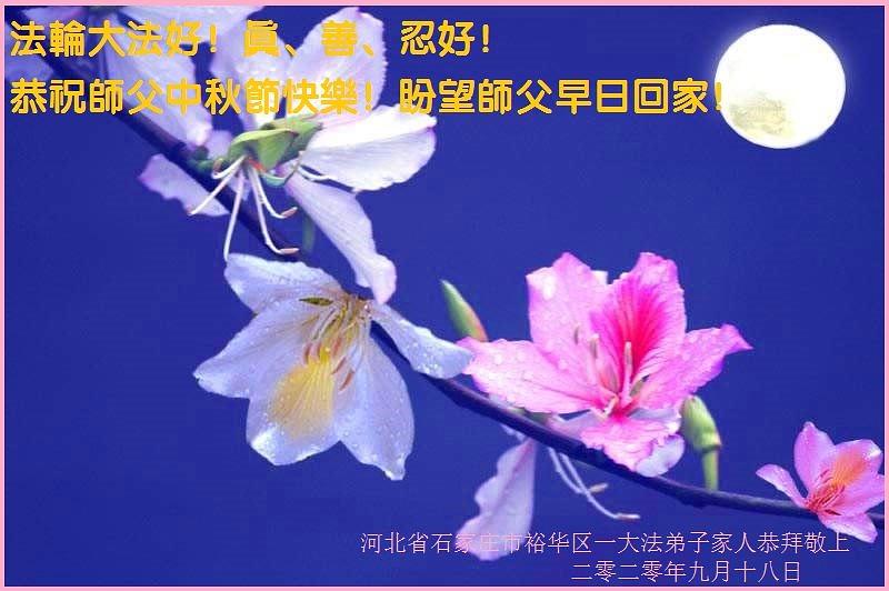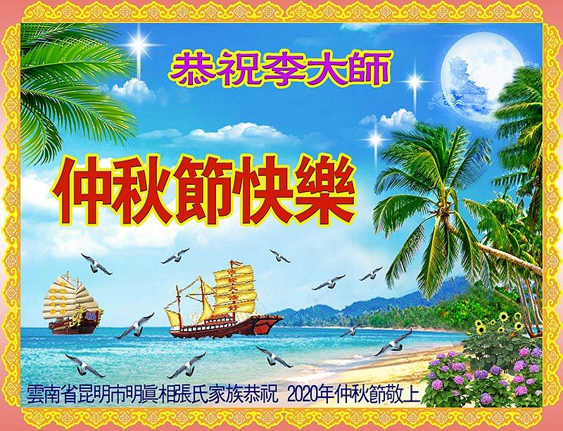 Članovi porodice Dafa praktikanta iz grada Tangshana u provinciji Hebei su zaželjeli Učitelju Liju sretan Jesenji festival. Oni u svojoj poruci kažu: „Pozdravljamo Učitelja, naporno ste radili. Mi smo velika porodica i zato što članovi naše porodice prakticiraju Dafa, vi ste nas zaštitili i dobili smo blagoslov. Vodimo siguran, zdrav i sretan život u tako uzburkanim vremenima. Znamo da je to zato što je Učitelj podnio sve vrste pritisaka da bi spasi čovječanstvo usred korupcije propadanja moralnih vrijednosti."