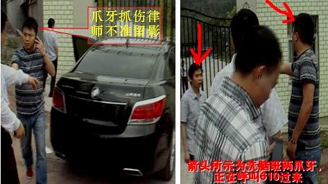 Gospodin Jiang i šestorica drugih odvjetnika su stigli u centar za ispiranje mozga u 10 sati 13. svibnja 2013. Dok su čekali da se vrata otvore prišao im je crni automobil bez registracija. Dvoje ljudi je iskočilo iz automobila tvrdeći da kamere nisu dozvoljene u centru za ispiranje mozga. Požurili su prema odvjetnicima, oduzeli im mobitele i pozvali agente Ureda 610.