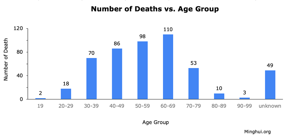 Zbog blokade informacija i poteškoća u prikupljanju informacija iz Kine, vjeruje se da potvrđeni broj smrtnih slučajeva predstavlja samo dio onih koji su do sada umrli u progonu.