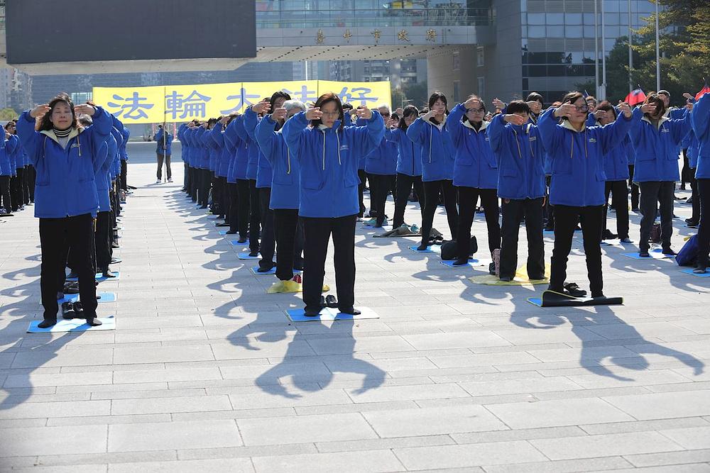 U 14 časova na dan Nove godine, Falun Dafa praktikanti su se u Tajchungu okupili ispred zgrade gradske vlade kako bi radili vježbe i uputili čestitke osnivaču ove prakse, Učitelju Li Hongzhiju. Čestitkama su mu izrazili svoje najveće poštovanje i unisono kazali: „Učitelju, sretna Nova godina! Falun Dafa je divan! Istinitost, Dobrodušnost i Tolerancija su dobri!"