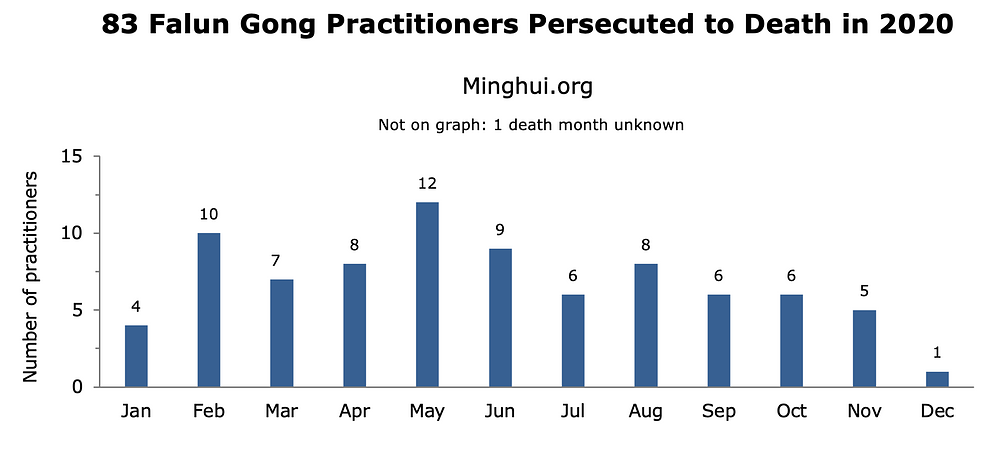Prema informacijama koje je prikupio Minghui.org, najmanje su 83 praktikanta Falun Gonga umrla u 2020. godini, od posljedica progona koji nad njima sprovodi kineski komunistički režim zbog toga što praktikanti podržavaju svoju vjeru.