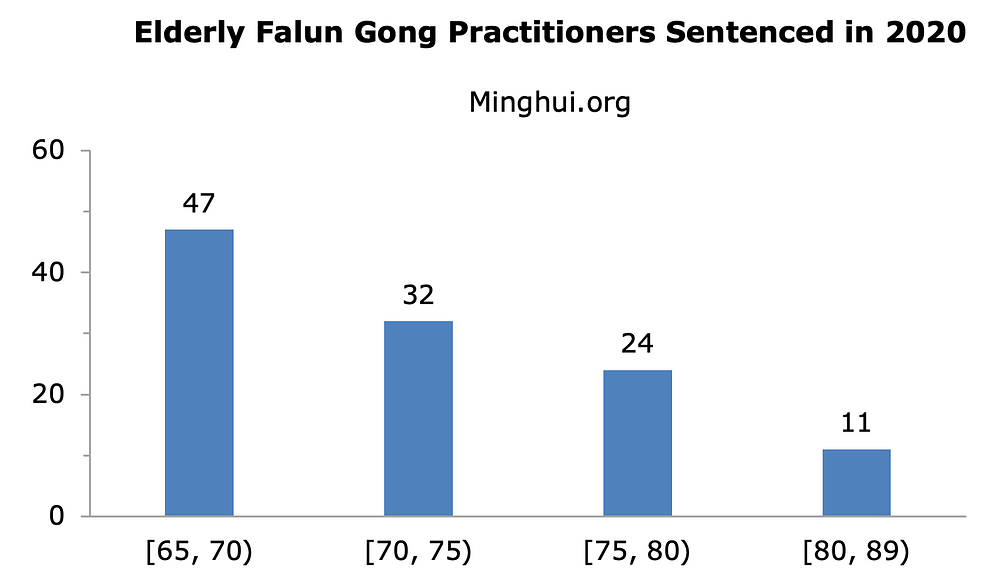Starost osuđenih praktikanata se kretala od 25 do 82 godine, od kojih je 114 imalo 65 ili više godina, a 11 ih je bilo u devetoj deceniji života. Jedan osamdesetogodišnji muškarac iz grada Dazhoua u provinciji Sechuan, je osuđen na 8,5 godina nakon više od dvije godine pritvora. Jedna je sedamdesetčetverogodišnja žena iz grada Jilin u provinciji Jilin i majka američkog državljana osuđena je na pet godina.