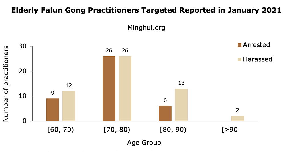U poređenju s decembrom mjesecom 2020. godine, broj slučajeva progona je naglo pao u januaru mjesecu 2021. godine. Sličan je obrazac primijećen i početkom 2020. godine kada je zabilježeno manje slučajeva progona nego u decembru 2019. godine, jer je većina policijskih snaga bila upućena na rad u provođenju drakonskih blokada i kontrole informacija koje kruže širom zemlji o pandemiji, ostavljajući manje radne snage koja bi mogla raditi na održavanju suzbijanja Falun Gonga.