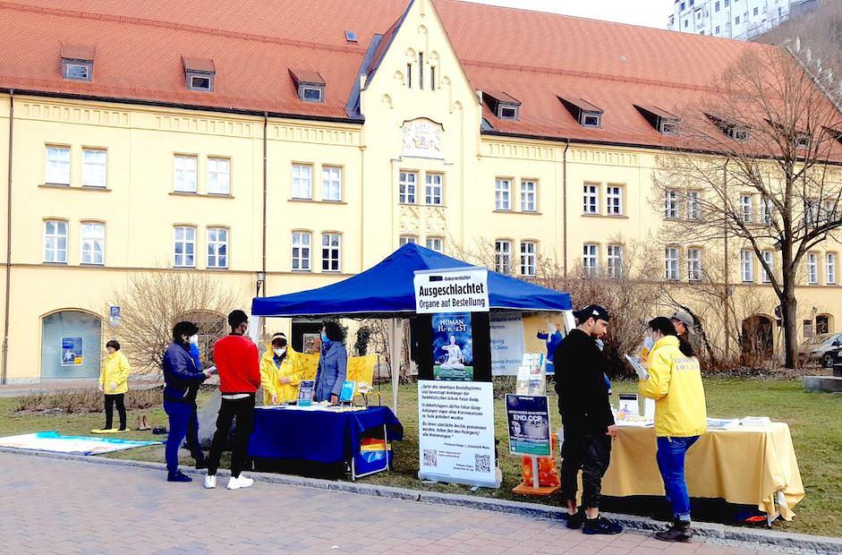 Falun Dafa praktikanti iz Njemačke su održali aktivnosti u Landshutu u Bavarskoj 28. februara 2021. godine. Postavili su informativni štand, demonstrirali izvođenje vježbi i s ljudima razgovarali o aktuelnoj represiji nad Falun Gongom u Kini, pozivajući na okončanje ovih zločina.