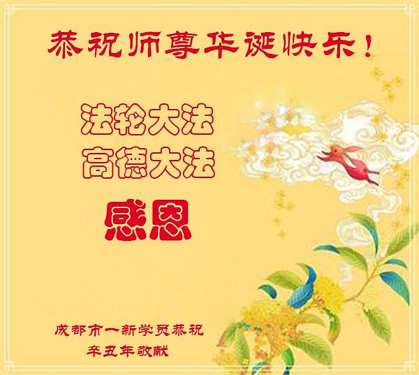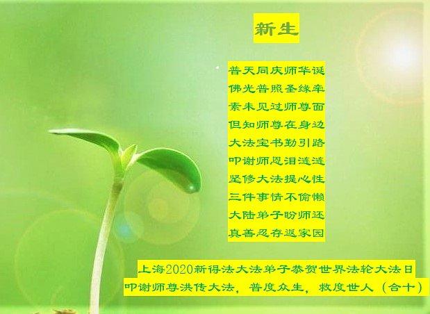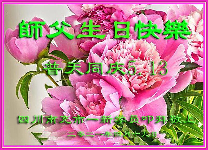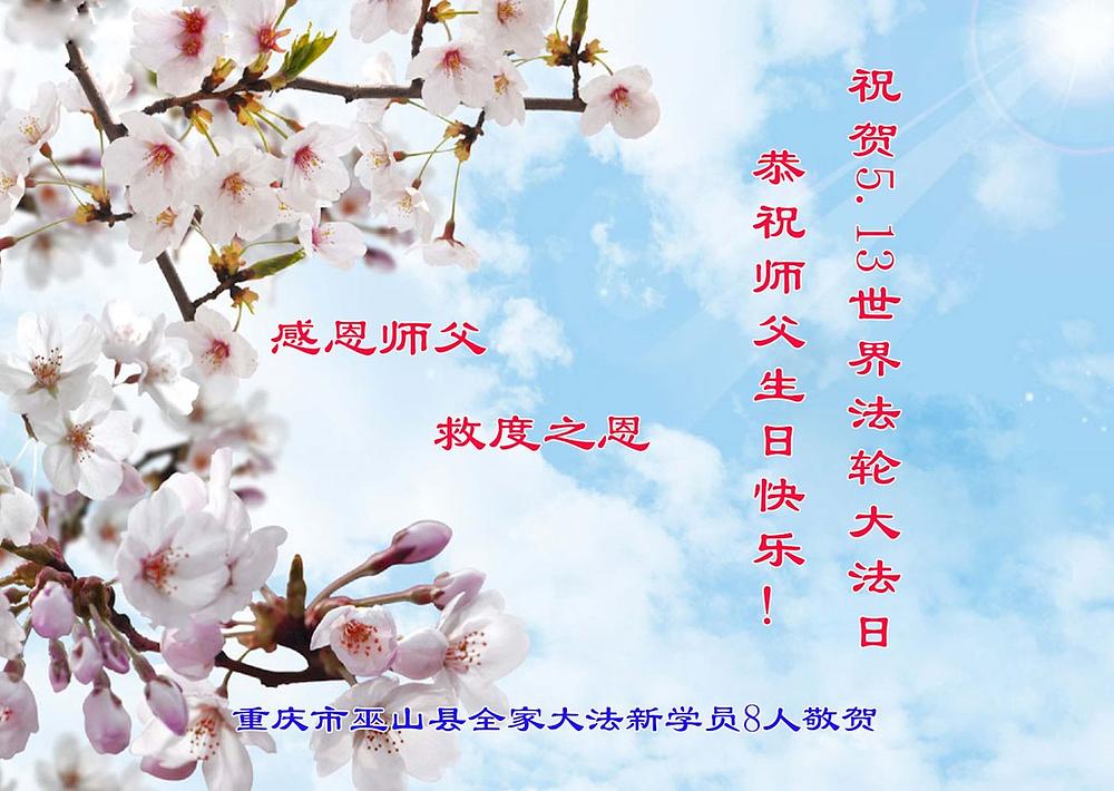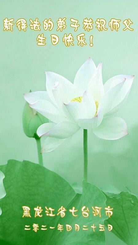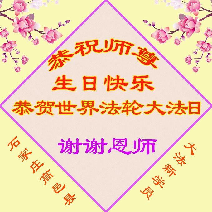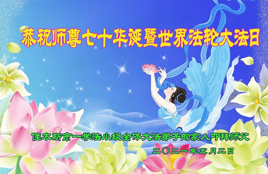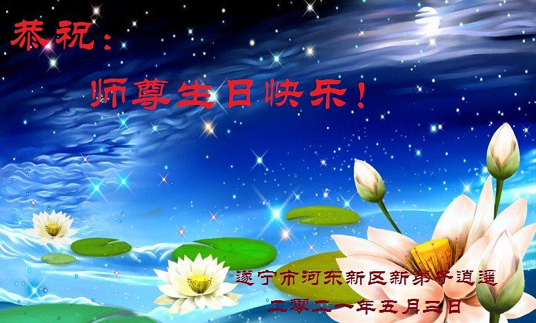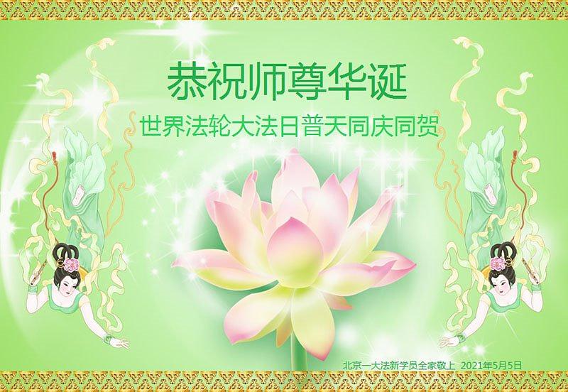 „Povodom Svjetskog Dana Falun Dafa, moja porodica i ja želimo Učitelju sretan rođendan! Iako sam novi praktikant koji prakticira manje od dvije godine, Učitelj se brižno odnosio prema meni. Kad se dobro ne kultiviram, dajete mi nagovještaje i potičete me da se ponašam u skladu s vašim učenjima. Kad radim dobro, potičete me da i dalje budem marljiv. Osjećam kako vrijeme brzo prolazi i žurim sa učenjem Fa, izvođenjem vježbi i prakticiranjem kultivacije."