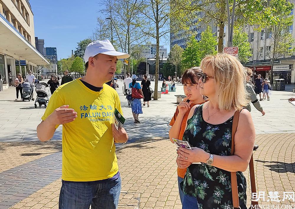 Jedna je osoba kazala praktikantima: „U Velikoj Britaniji imamo mnogo proizvoda koji dolaze iz Kine. Ne mogu potpisati peticiju da se protivim Kini." Praktikanti su onda ovoj osobi objasnili da Kineze koji proizvode ove proizvode KPK prisiljava da proizvode jeftine proizvode kojim zatim opskrbljuju svijet. Također su joj objasnili da potpisivanjem peticije diže glas protiv kršenja ljudskih prava od strane KPK i da KPK nije Kina. Ova je osoba potpisala peticiju odmah nakon što je čula ovo objašnjenje.