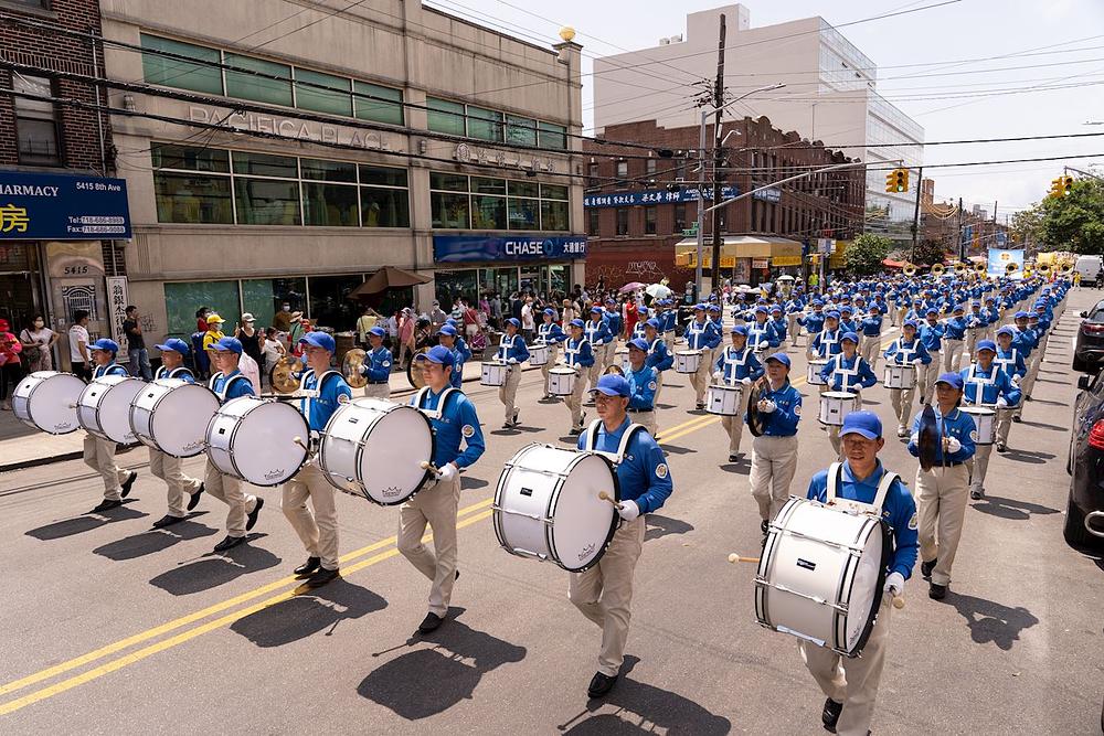Parada koju je predvodio Tian Guo Marching Band i koja je imala sekciju sa temom "napustimo KPK", je bila dugačka kao čitava kineska zajednica na Osmoj aveniji. Veliki je broj ljudi zastajao da gleda i fotografiše ili snima ovaj događaj. Neki su ljudi pohvalili praktikante kazavši: "Parada je veoma grandiozna!"