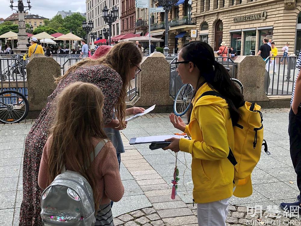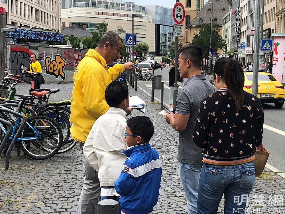 Europski Falun Gong praktikanti okupili su se 7. kolovoza u Frankfurtu na održavanju mimohoda kojim osuđuju Komunističku partiju Kine zbog 22. godine dugog progona ove duhovne prakse.