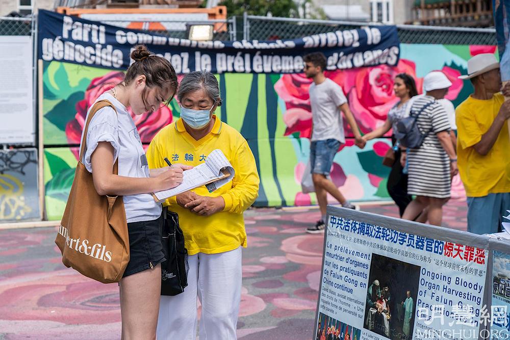 Isabelle iz Montreala je sa zadovoljstvom potpisala peticiju. “Vidite, nisam ja jedina osoba koja je potpisala peticiju. Što veći broj ljudi dobije ovu informaciju i shvati da postoji problem, imaćemo više snage da to riješimo”, rekla je. Ona vjeruje da je objašnjavanje istine koje vrše praktikanti važno i da „mi kao građani imamo odgovornost da djelujemo“.