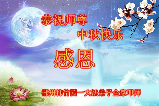 Dafa učenica iz grada Chenzhoua u provinciji Hunan je u svom pozdravu u ime svoje porodice napisala: „Ja sam, (u porodici), jedina koja prakticira Falun Dafa, ali je cijela moja porodica od toga primila dobrobiti. Oporavila sam se od bolesti koje su me mučile mnogo godina nakon što sam počela prakticirati Dafa i postala sam potpuno drugačija osoba. Nakon što su na meni vidjeli pozitivne promjene, sin, kćerka i snaha su počeli da me podržavaju u mome vjerovanju i odrekli su se svog članstva u Partiji. Moja porodica i ja želimo cijenjenom Učitelju sretan Festival sredine jeseni! Hvala Vam, Učitelju! ”