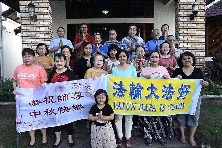 Praznične čestitke praktikanata koji se često okupljaju na Falun Dafa štandu u Jalan Aloru u Kuala Lumpuru, Indonezija