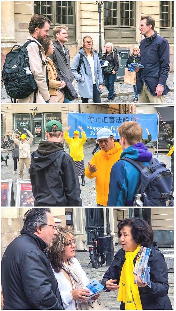Na Stureplanu u blizini centra Stockholma i Muzeja Nobelove nagrade, Falun Dafa praktikanti su, 1. i 2. oktobra 2021. godine, demonstrirali izvođenje vježbi i prisutnima govorili o zločinima prisilnog odstranjivanja organa koje vrši Komunističke partije Kine (KPK), a čija su meta praktikanti.