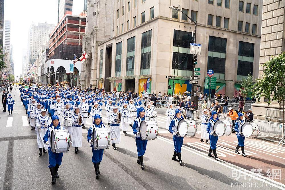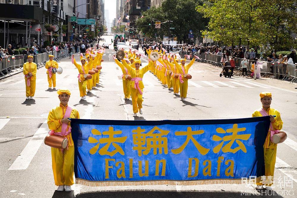 U sklopu parade nastupali su orkestri, izvođači na pokretnim binama i stotinu grupa koja su marširale od 44. ulice do 72. ulice. Falun Dafa praktikanti su sudjelovali s nekoliko grupa, naime s orkestrom Tian Guo, s grupom barjaktara, s grupom koja je demonstrirala vježbe i s grupom dobošara. Gledatelji su bili duboko impresionirani šarenim bojama i lijepom glazbom koji su pratili praktikante i pljeskom su im pokazivali podršku.