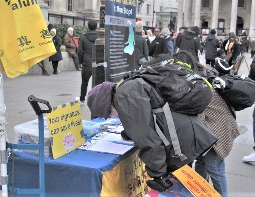 Falun Dafa praktikanti nastavili su aktivnosti za podizanje svijesti na slikovitim mjestima, nakon što su ograničenja zbog pandemije ukinuta u srpnju. Održavali su aktivnosti u kineskoj četvrti, ispred Britanskog muzeja i na Trgu sv. Martina svake subote poslijepodne. Ljudi su prihvaćali letke i potpisivali peticiju za osudu progona kojeg provodi Komunistička partija Kine (KPK).