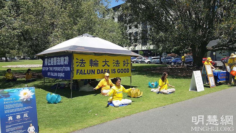 Falun Dafa praktikanti iz Južne Australije su se okupili na Hindmarsh Squareu u glavnom gradu Adelaide 28. novembra da bi ondje izvodili Falun Dafa vježbe i podizali svijest o progonu koji se i u ovom trenutku dešava u Kini. Mnogi su se ljudi zaustavljali da bi razgovarali sa praktikantima i potpisali peticiju kojom se poziva na prekid progona.