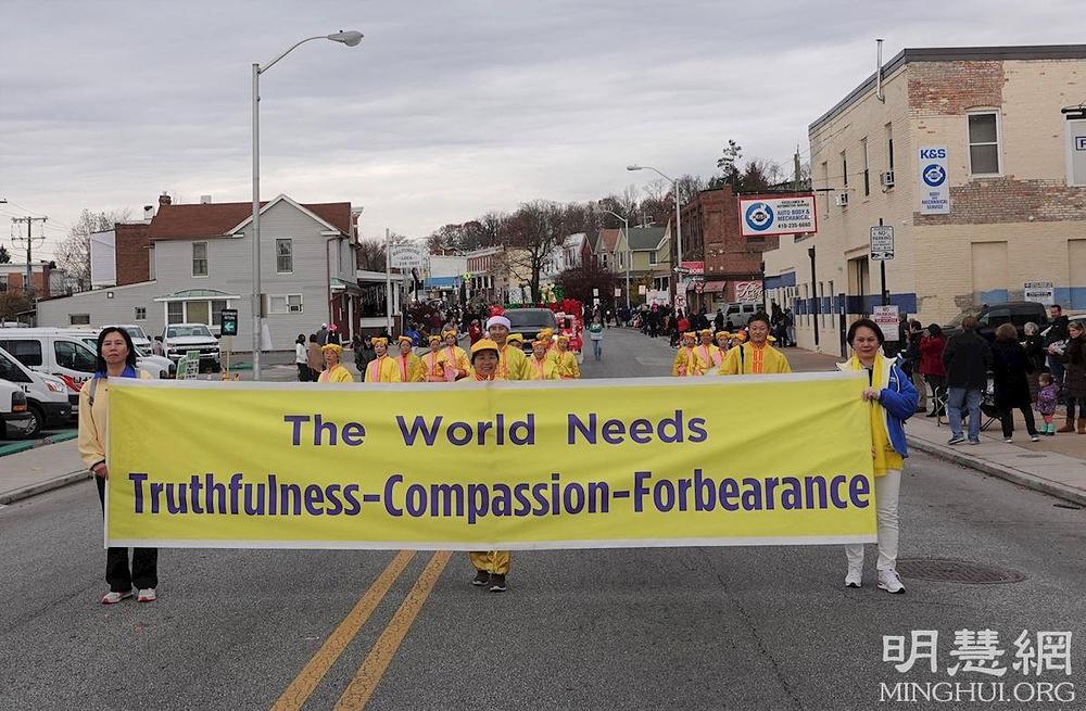 Prošle godine je godišnja božićna parada bila otkazana zbog epidemije COVID-19. Ova je tradicionalna povorka nastavljena ove godine, a Falun Dafa praktikanti su na njoj učestvovali sa dobošarskim timom i auto splavom. Brandon Scott, gradonačelnik Baltimorea je zahvalio praktikantima na njihovom učešću. Rekao je: „Divno je vidjeti Falun Dafa, grupu koja predstavlja kinesku zajednicu, na ovogodišnjoj paradi. Hvala vam!"