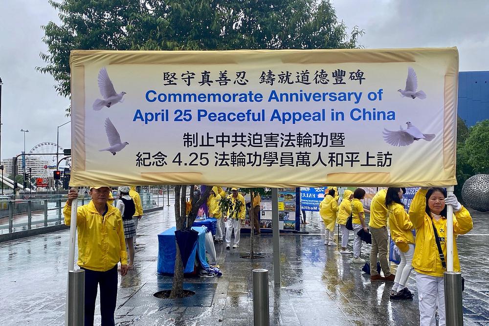 Falun Gong praktikanti su u Queenslandu imali aktivnosti u blizini Brisbane Squarea 23. aprila u znak sjećanja na mirni apel održan u Pekingu prije 23 godine. Demonstrirali su vježbe, postavljali plakate i transparente i dijelili informacije o progonu. Ljudima su objašnjavali da je Falun Gong, koji se naziva i Falun Dafa, progonjen od strane Komunističke partije Kine (KPK) od 1999. godine.