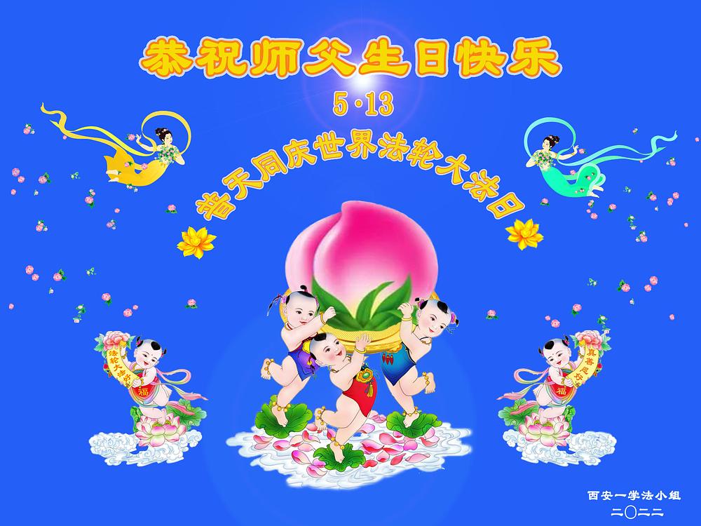 Praktikanti iz grada Xi’ana u provinciji Shaanxi, su veoma zahvalni što ih Falun Dafa vodi. „Mi podsjećamo jedni druge da budemo dobri građani slijedeći Falun Dafa učenja. Gledajući unutar sebe i pronalazeći svoje vezanosti, ostat ćemo marljivi i bolje raditi na preostalom putu kultivacije”, napisali su u svojim čestitkama.