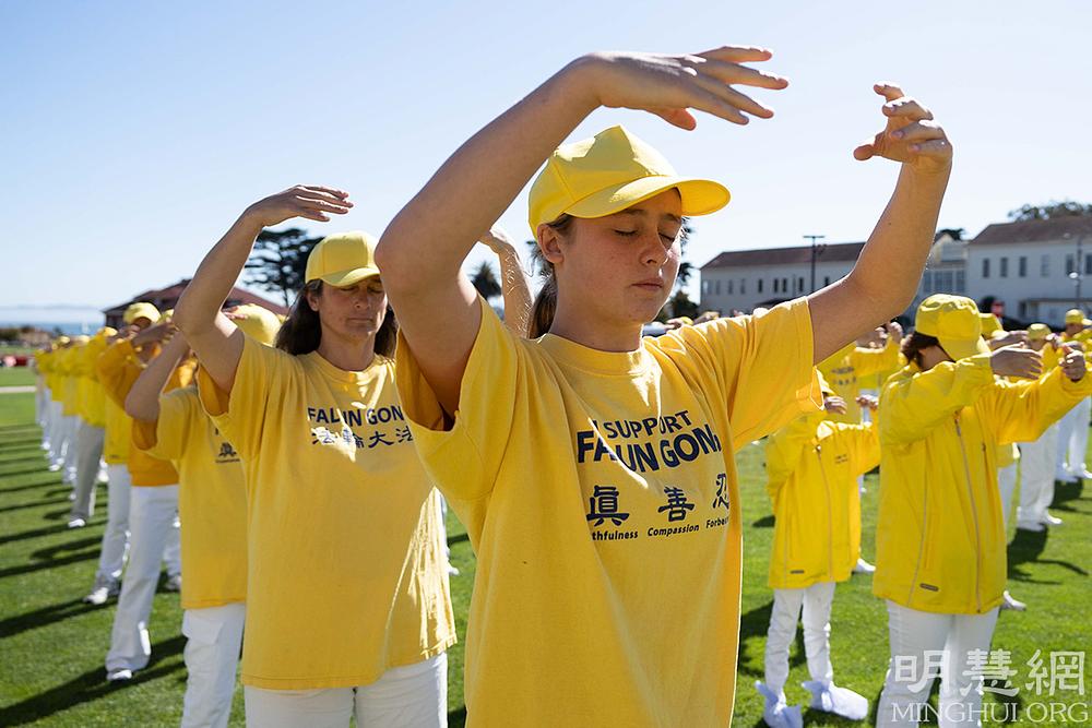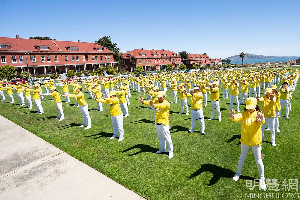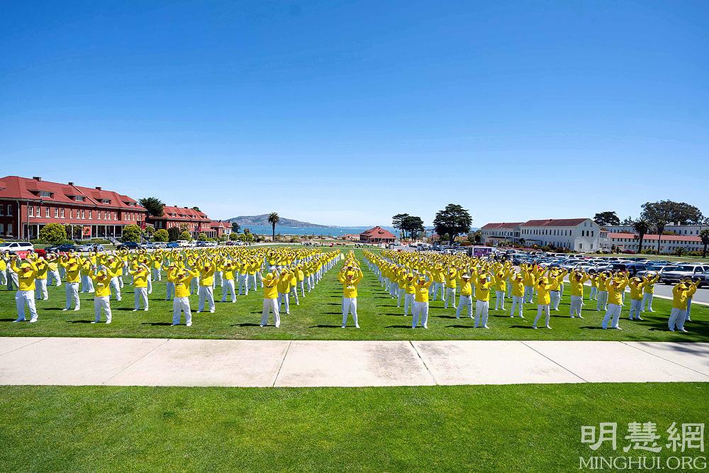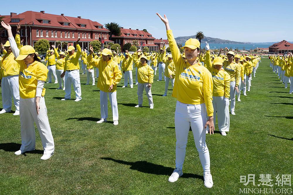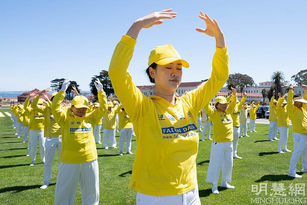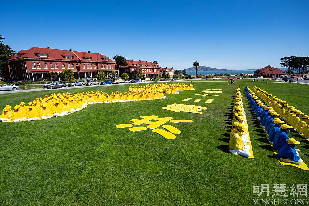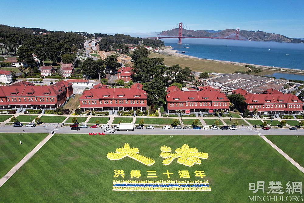 Povodom proslave Svjetskog Dana Falun Dafa i rođendana Učitelja Li Hongzhija, Falun Dafa praktikanti iz San Francisca su se 14. svibnja okupili u blizini mosta Golden Gate se da svojim tijelima formiraju kineske znakove značenja „30. godišnjica predstavljanja Falun Dafa”.