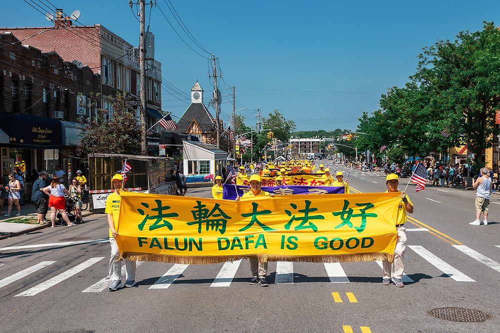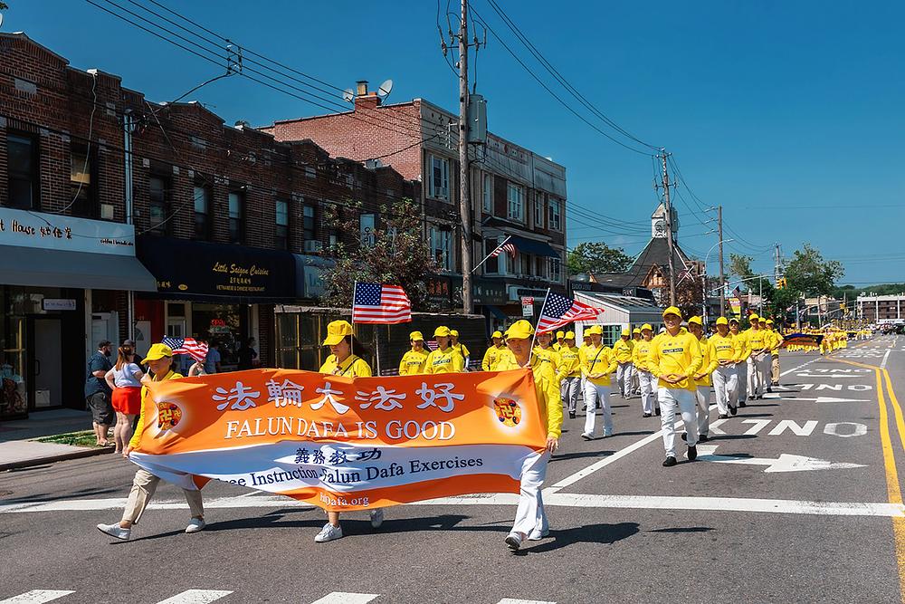 Falun Dafa praktikanti su učestvovali u paradi održanoj u povodu Dana sjećanja na Little Neck-Douglastonu na Long Islandu, u New Yorku, 30. maja 2022. godine. Dan sjećanja je nacionalni praznik koji odaje počast onima koji su umrli služeći SAD, a također podržava porodice aktivnih vojnih službenika kao i veterane.