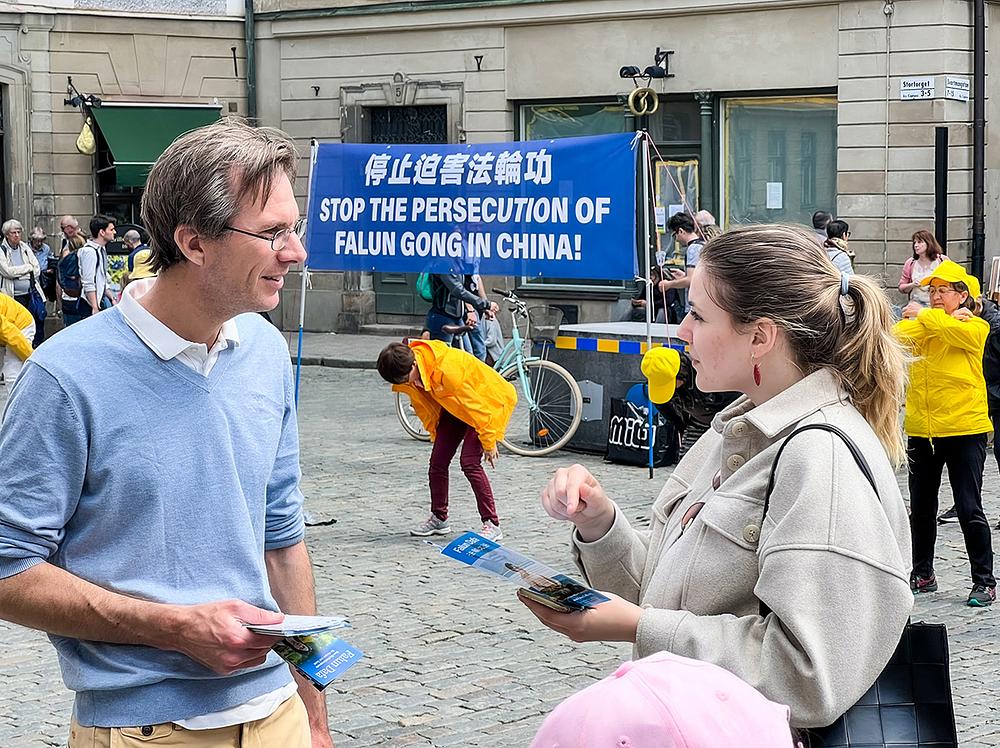 Tokom održavanja međunarodnog sastanka Stockholm +50, koji je sazvala Generalna skupština Ujedinjenih nacija, 2. – 3. juna 2022. godine u Stokholmu, Falun Dafa praktikanti su postavili štand ispred Nobelovog muzeja. Govorili su ljudima o Falun Dafa i o tome kako je duhovna praksa progonjena u Kini.