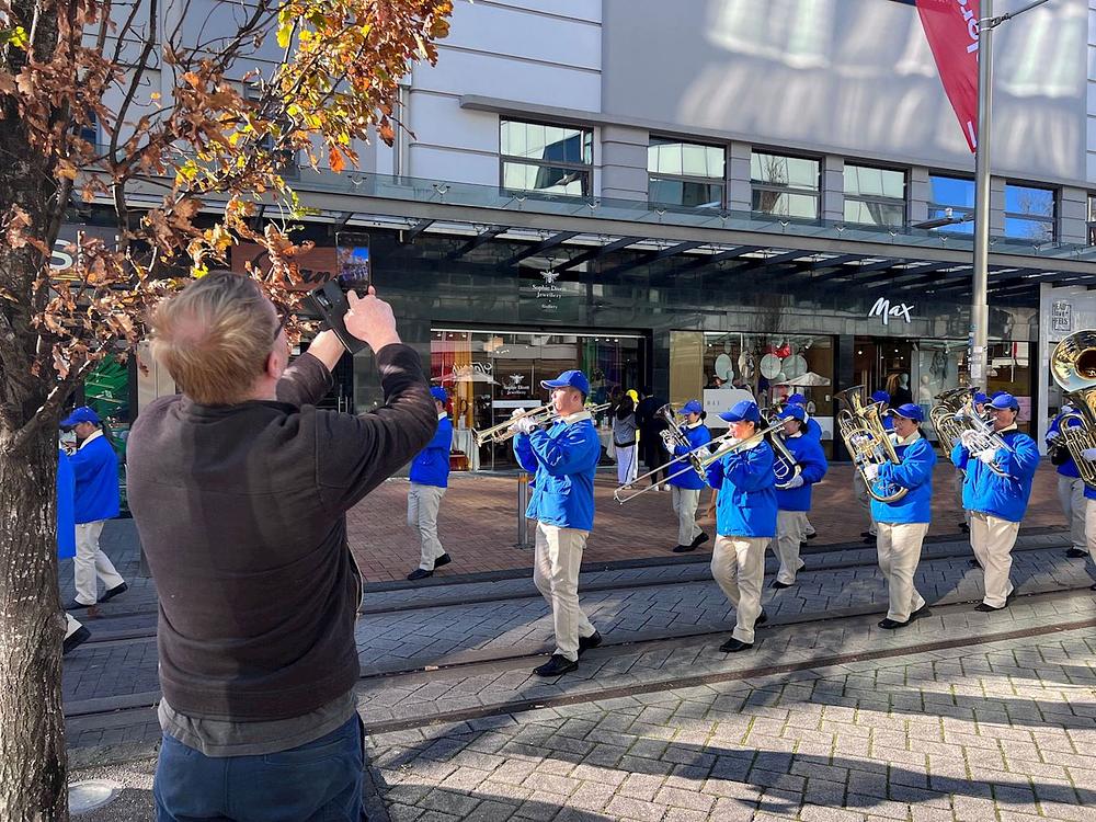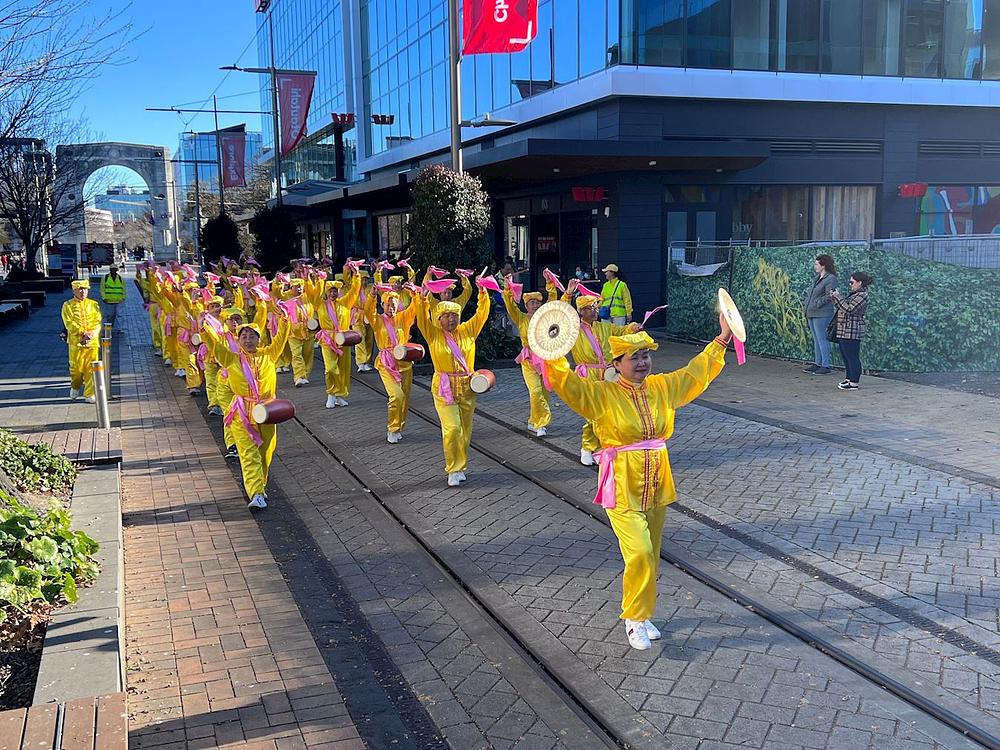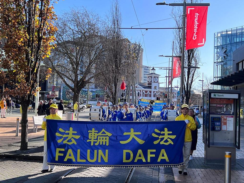 Falun Dafa praktikanti su, 11. juna, u Christchurchu održali skup i mimohod kod Mosta sjećanja. Prolaznicima su govorili o Falun Dafa i kako Komunistička partija Kine (KPK) progoni ovu praksu kultivacije više od dvije decenije. U sklopu ove manifestacije nastupili su Tian Guo Marching Band i dobošarska grupa.