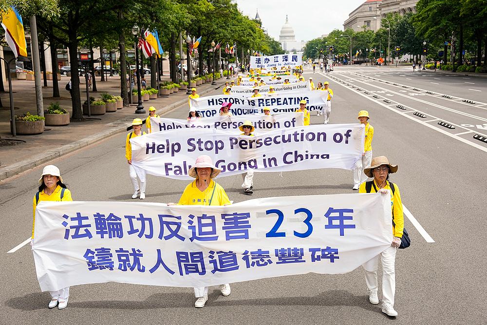 Približno 2.000 Falun Dafa praktikanata je, popodne 21. jula, održalo paradu u Washingtonu D.C. u znak protesta protiv dvadeset trogodišnjeg progona koji vrši Komunistička partija Kine (KPK). Praktikanti su pozvali na trenutni prekid zločina KPK.