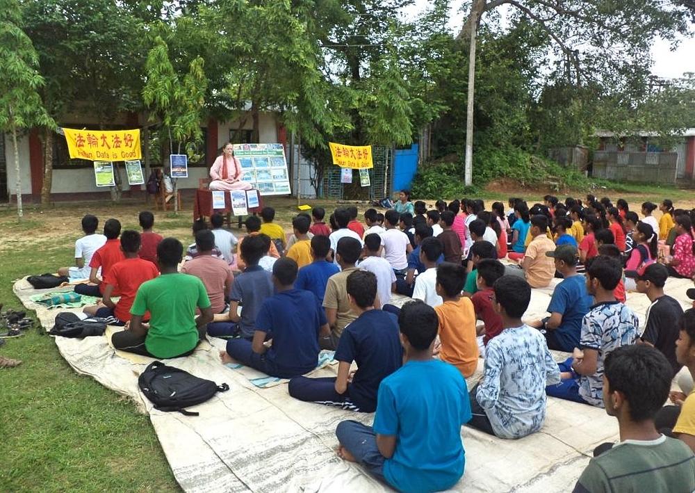 Praktikantica je održala više od 40 satova za predstavljanje Falun Dafa na 17 mjesta u udaljenoj državi Tripura od kraja travnja do početka srpnja ove godine. Među raznim lokacijama našli su se sveučilište i hram, uz 15 škola. Deset lokacija bilo je izvan glavnog grada Agartale.