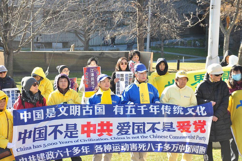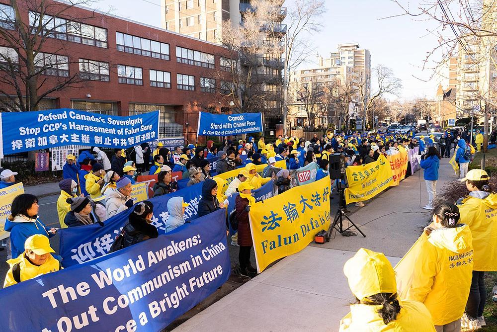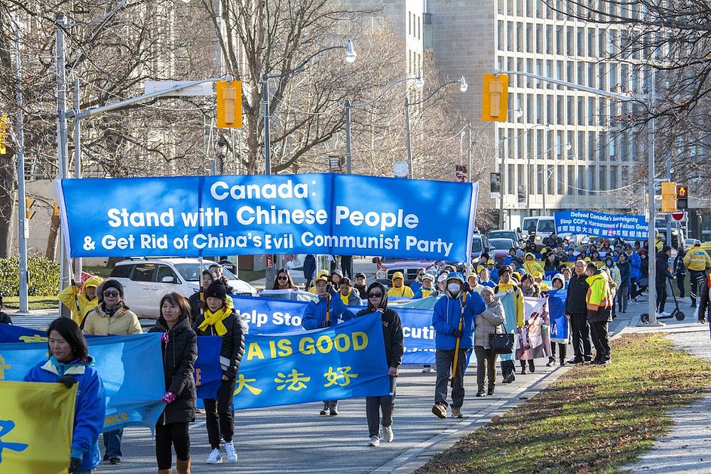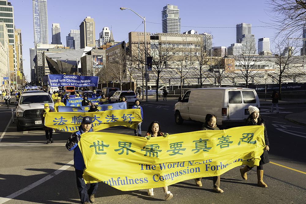 Potom su marširali do kineskog konzulata u Torontu i nastavili skup. Policijska vozila su blokirala obje strane puta ispred kineskog konzulata kako bi omogućila održavanje marša. Govornici na skupu su osudili progon koji vrši KPK i izrazili svoju podršku naporima kineskog naroda da se odupre ugnjetavanju KPK.