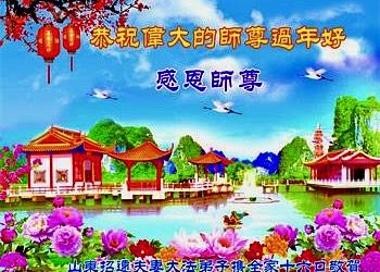 Praktikanti iz grada Iinchuan, Ningkia, napisali su: „Veoma smo zahvalni Učitelju za svu saosećajnost i zaštitu tokom godina. Nastavićemo da radimo dobro i tokom Nove godine, kako u poboljšanju sebe, tako i u spasavanju ljudi. Hvala Učitelju na svemu i srećna Nova godina!”