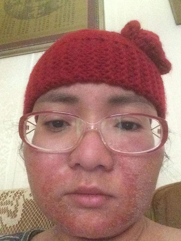 Nakon povratka u Australiju, bila sam odlučna da nastavim kultivaciju. U aprilu 2018., simptomi na mojoj ruci su se ponovo javili, a koža mi je postala svrabna, hrapava i perutala se. Ovo se brzo proširilo na lice, vrat i celo telo. Posle nekoliko dana, koža je počela da luči gust gnoj. Celo telo mi je postalo lepljivo i natečeno, i osećala sam stalno peckanje. Bojala sam se da pogledam svoje deformisano telo.