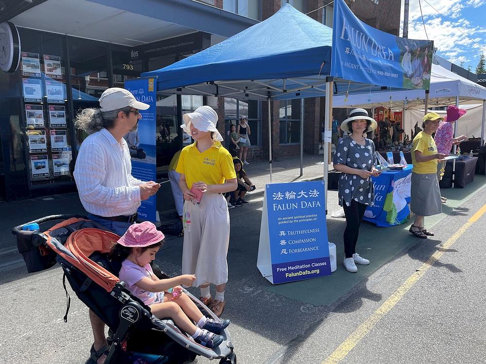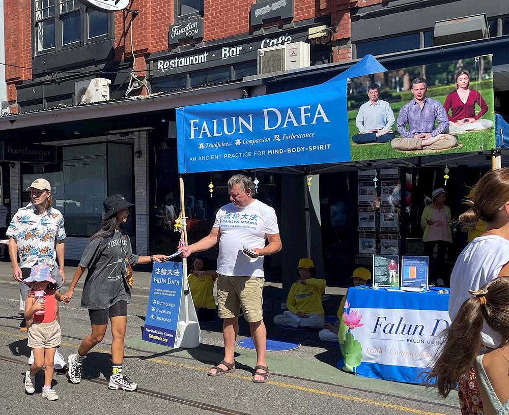 Glenferrie festival je jedan od najvećih lokalnih festivala u Melburnu i privlači mnoge porodice zajedno sa njihovom djecom da navrate i probaju hranu i učestvuju u raznim zabavnim aktivnostima. Praktikanti su demonstrirali Falun Dafa vježbe i podijelili mnogo informativnih letaka tokom ove jednodnevne manifestacije. Mnogo ljudi iz različitih etničkih grupa i uzrasta su zastali pored Dafa štanda kako bi saznali više o ovoj praksi. Neki su i na licu mjesta naučili vježbe.