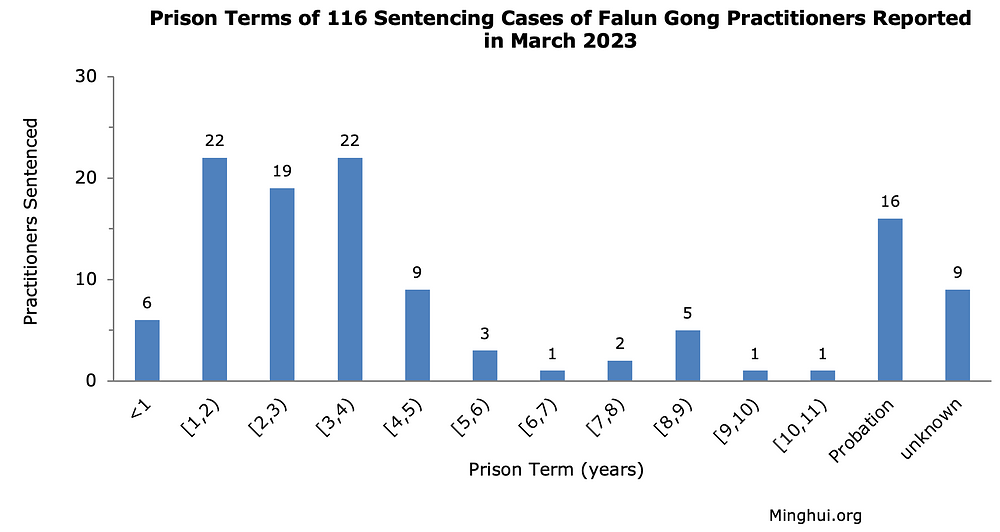 U martu mjesecu 2023. godine prijavljeno je ukupno 116 slučajeva Falun Gong praktikanata osuđenih zbog svoje vjere.