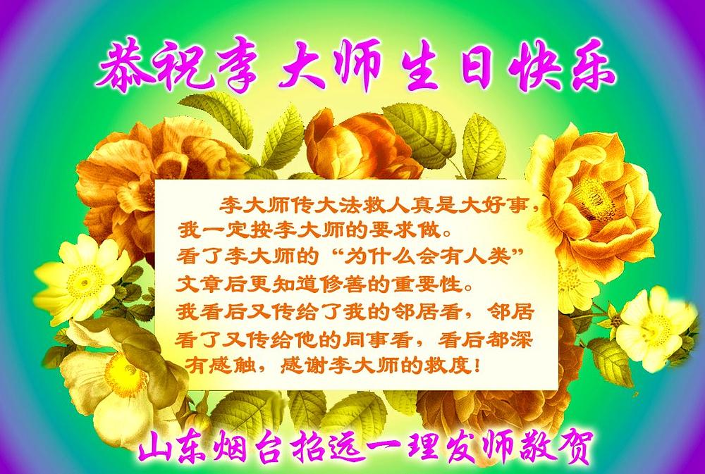 Neki članovi porodica praktikanata u gradu Veihai, provincija Šandong, rekli su da su pročitali nedavni članak Učitelja Lija („Zašto čovečanstvo postoji“). „Ovo je blago za sve nas i tako smo zahvalni na saosećanju majstora Lija“, piše u čestitkama. „Takođe smo naučili da budemo pošteni i ispravni.“