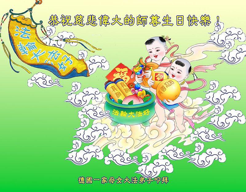 Mladi Falun Dafa praktikant i roditelji iz Njemačke slave Svjetski Falun Dafa Dan i žele poštovanom Učitelju sretan rođendan!