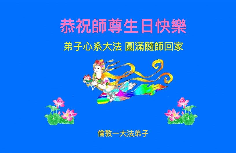 Falun Dafa praktikant iz Londona u Ujedinjenom Kraljevstvu slavi Svjetski Falun Dafa Dan i želi poštovanom Učitelju sretan rođendan!