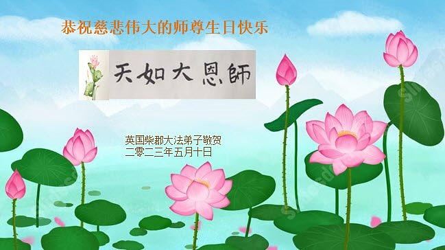 Falun Dafa praktikanti iz online grupe za učenje Fa u Ujedinjenom Kraljevstvu slave Svjetski Falun Dafa Dan i žele poštovanom Učitelju sretan rođendan!